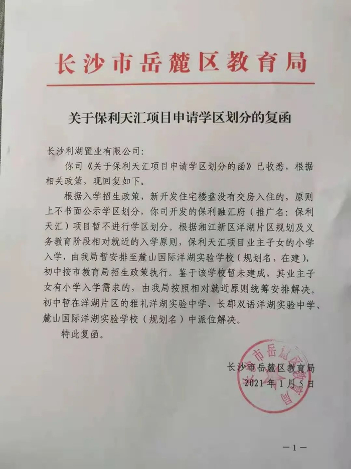 落座湘江新区国家级战略高地、500亿洋湖国际新城;拥享7200亩洋湖湿地公园醉美景观;麓山(在建)、雅礼等六大全学龄名校云集、宜家荟聚商圈;谢子龙影像艺术馆、李自健美术馆等文化艺术场馆星罗棋布……秉承天字系“地脉天造”的四大一线择址标准,保利天汇以地段价值赋能人居价值,以中心价值成就卓越的天汇价值。据保利项目负责人介绍,该项目业主子女上学方面,小学暂时安排在麓山国际洋湖实验学校(规划名、在建),初中暂时在雅礼洋湖实验中学(规划名、在建)、长郡双语洋湖实验中学、麓山国际洋湖实验学校中派位解决。