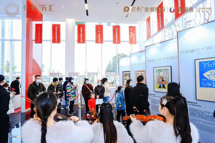 作为主打健康人居+艺术品味的高端品质项目,健康与艺术成为其耀眼的标签。自迈入接待中心那一刻起,一场跨世纪的艺术对话在同一时间段拉开了序幕。当天,“一位大师的诞生”——毕加索真迹艺术展同步展映,《穿着围裙的玛雅》、《瓦洛里斯的公牛》等近10幅真迹作品惊艳亮相,人们从四面八方奔赴而来,只为零距离与毕加索来场跨越时空的对话,感受艺术带来心灵涤荡。据保利相关负责人介绍,保利天汇携大师真迹而来,不仅是对艺术的致敬,更是源自骨子里,对匠心的虔诚信仰。