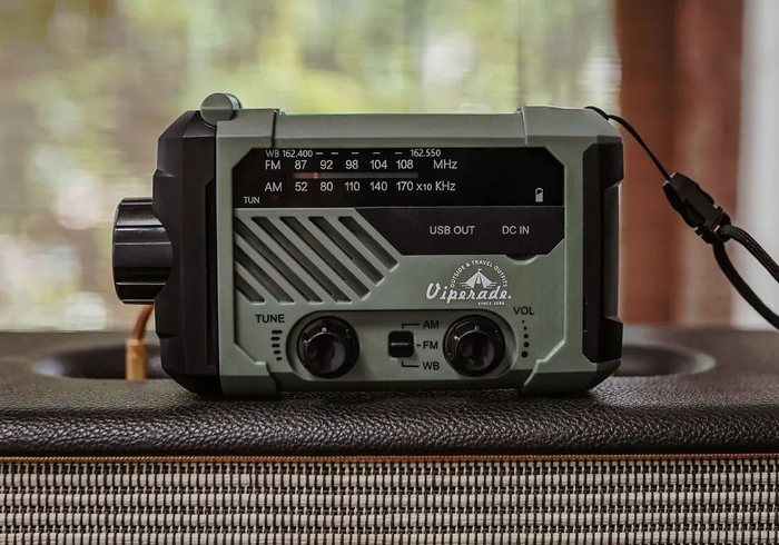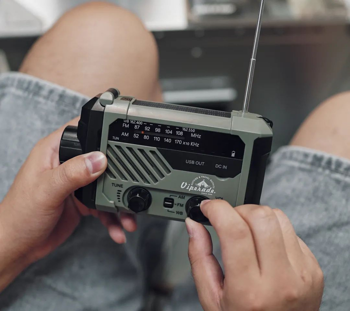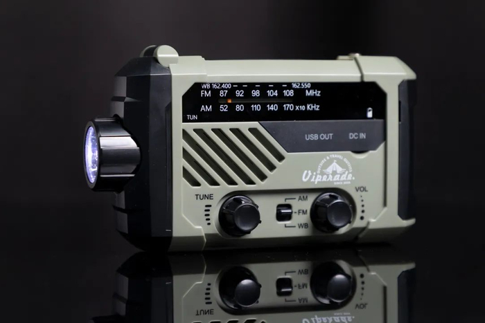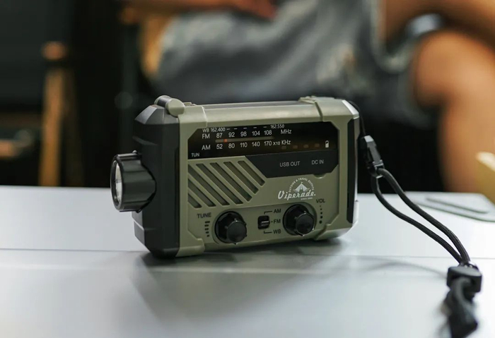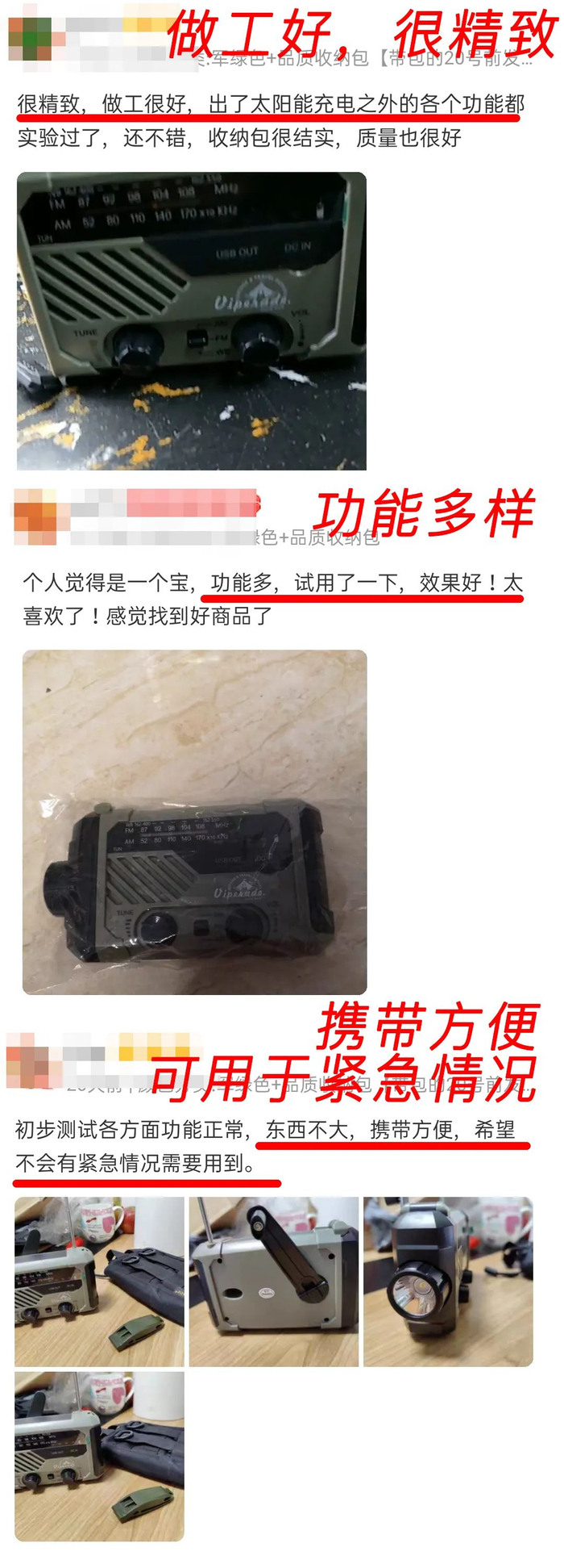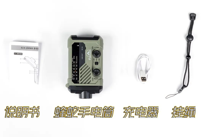 根据应急清单建议,购买具备多种功能的应急手电筒更加靠谱!比如它——在家、户外都能用的蝰蛇多功能应急手摇手电收音机。