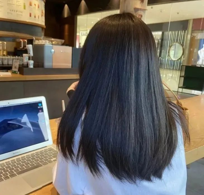 染出来的头发,从发根到发梢、根根黑亮,颜色饱满又自然。