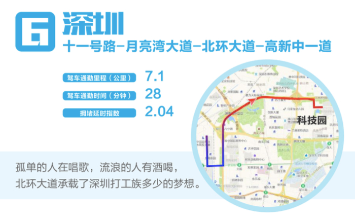 作为最年轻爱奋斗的城市,深圳人每天都奔波在上下班的路上。数据显示,最热门的通勤道路是十一号路——月亮湾大道——北环大道——高新中一路。