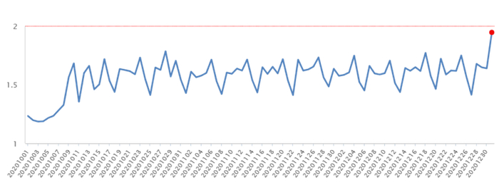 2020年全国50个主要城市的平均路网高峰行程延时指数为1.609,比2019年下降2.5%。其中,2月份受疫情影响拥堵程度最低,随着复工复产的推进,城市交通逐渐复苏,5月开始至12月拥堵同比上升。