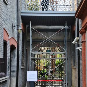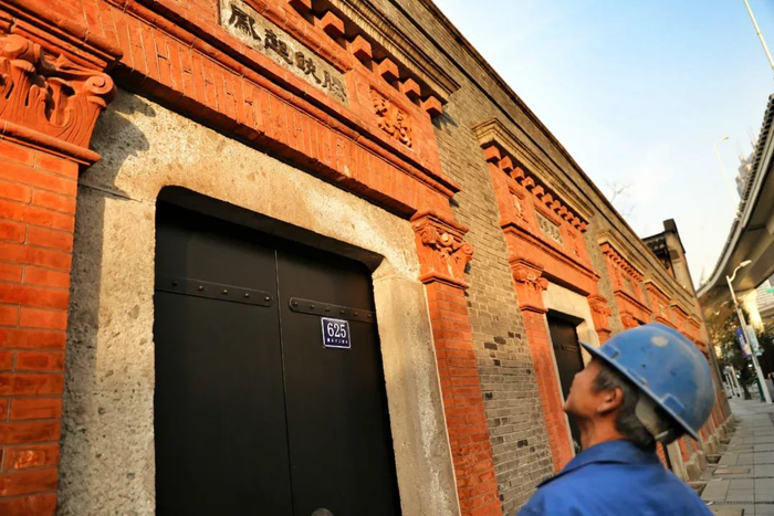 据介绍,在确保文物建筑安全的基础上,修缮工作严格遵循“修旧如故”的原则,一期工程主要包括外立面清水墙风化严重部位、大门门头线脚风化及严重损坏部位补缺,局部墙面修补以及木门重新刷漆等饰面修补工作。项目施工在选材、工艺方面秉持匠心,按照传统的材料及工艺对建筑进行维护保养,完全保留了建筑的历史面貌,延续了建筑的耐久性和使用性。