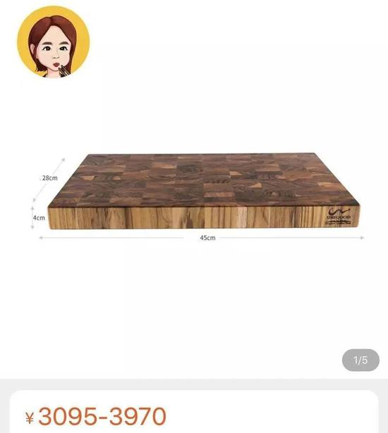 ·Hamzy此前在淘宝店铺中售卖的同款菜板价格高昂。