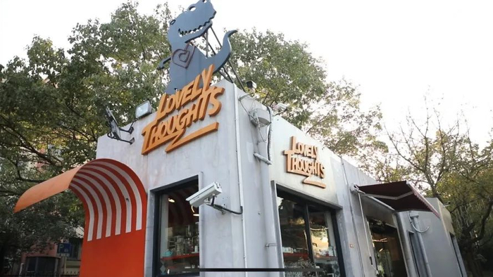 最初我们一直没想好用什么店名,有一天翻看过去四处旅行收集的小玩意,发现了一枚冰箱贴,上面就是一只小恐龙,旁边写着这几个英语单词,越看越中意。