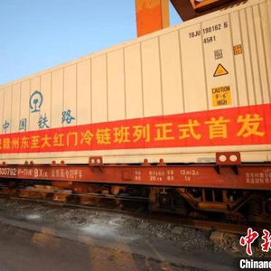 中新网赣州1月19日电 (廖国胜 记者 吴鹏泉)1月19日下午,8个装满赣南水果橙汁的冷藏集装箱运输专用平车缓缓驶出赣州东站,一路向首都北京驶去。