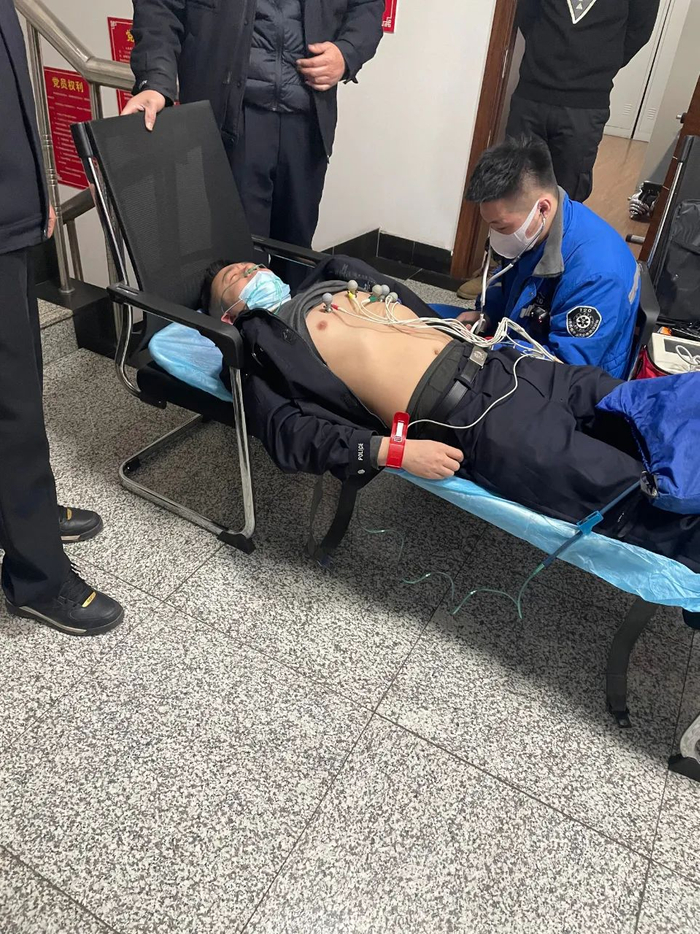 120急救人员在派出所内对民警安东旭现场施救