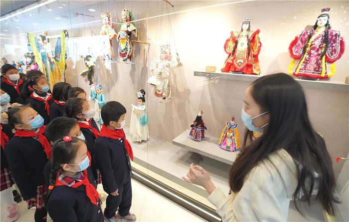 展示厅里的木偶有传统的也有新奇的,孩子特别喜欢。