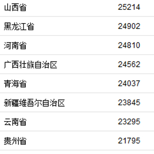 31省区市2020年人均可支配收入。