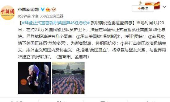 原标题:拜登正式宣誓就职美国第46任总统 就职演说透露这些信息