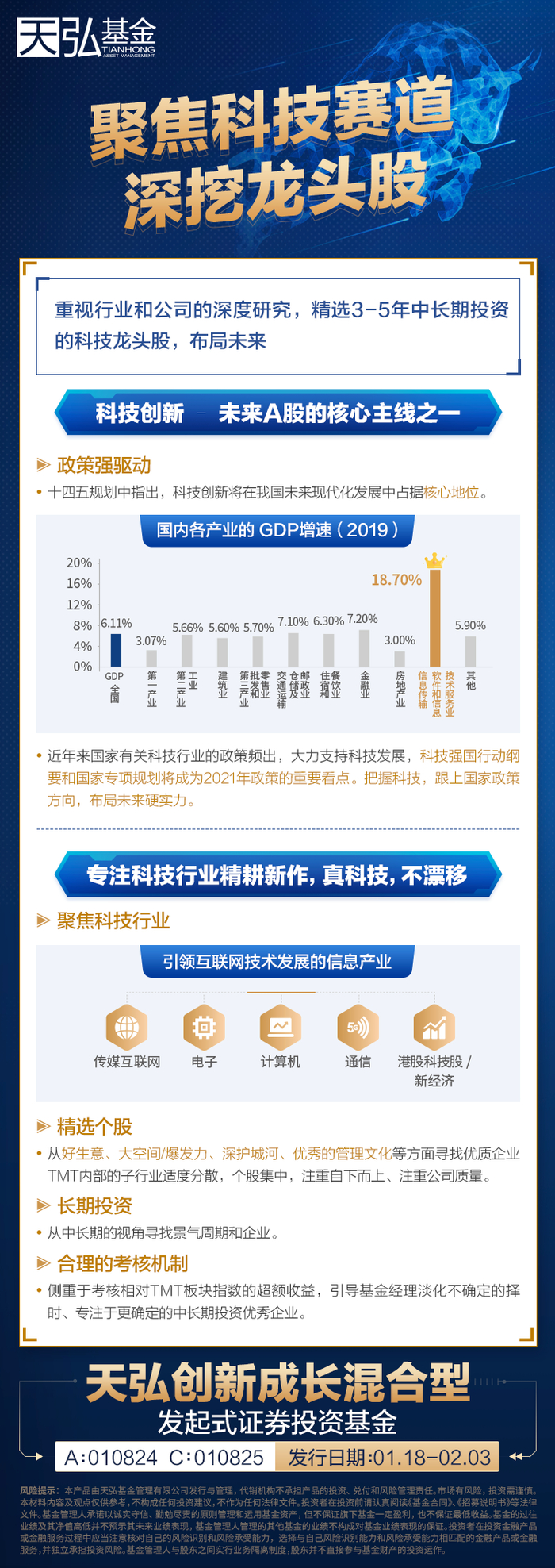 如果你对周楷宁的投资理念感到认可,可以关注他正在发行的产品天弘创新成长混合型基金(A类:010824;C类:010825),目前正在发行!该基金专注投资科技股,同时可投港股通标的。