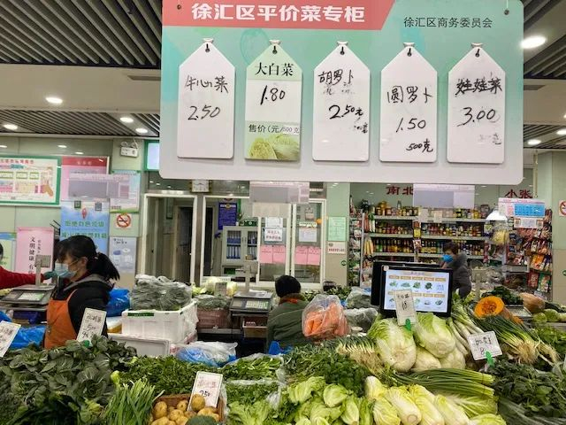 长宁区的美天新渔菜市场,同样有平价菜的专柜。“每天供应7种平价菜,每7天轮换一次新品种。”该市场的徐经理说,考虑到周边居民春节不离沪的情况,目前已经增加了主副食品的供应量,做好年货供应。同时平价菜、平价肉的供应也平抑了周边菜市场的价格。