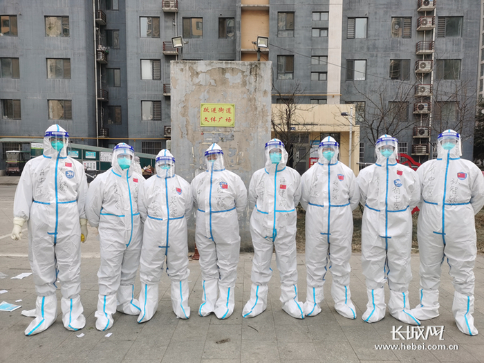 作为河北省中医院“勇士”之一,许建成(右4)和同事前往疫情中风险地区为密接人员做核酸采集。