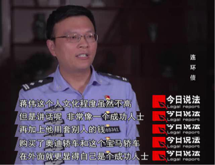 警方调查还发现,蒋伟曾用同样的手段诈骗过当地一名事业单位的工作人员,造成被害人重度抑郁。他用诈骗所得购买了奥迪、宝马两辆车,之后又轮流开着两辆车,到孙同芹处故技重演。