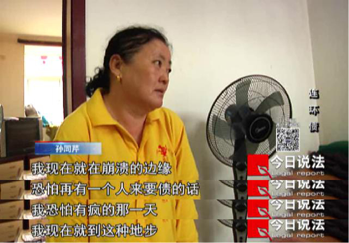 两年来,在他人怂恿下,孙同芹以贷养贷,欠下外债近80万元。当初借钱时,孙同芹是拿房产进行的担保和抵押,由于还不上钱,已有债主向法院提起诉讼,孙家很可能要失去唯一的住房。