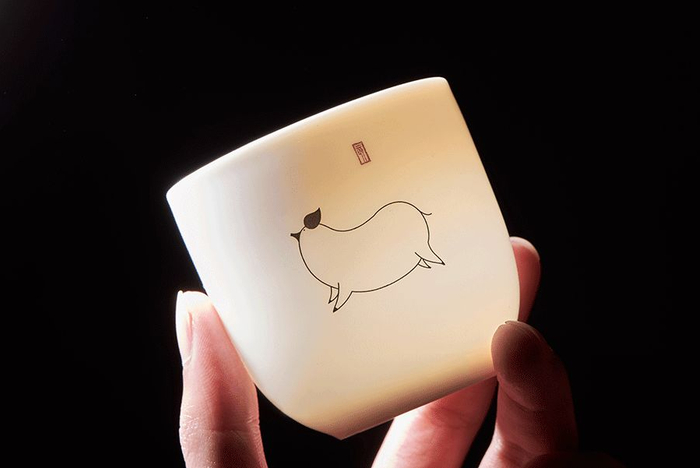 12生肖纳福杯便是出自福建瓷都德化,初次相见,被其甜白温润的外观吸引:釉面干净自然,光亮洁净,有玉石般的光泽质感。