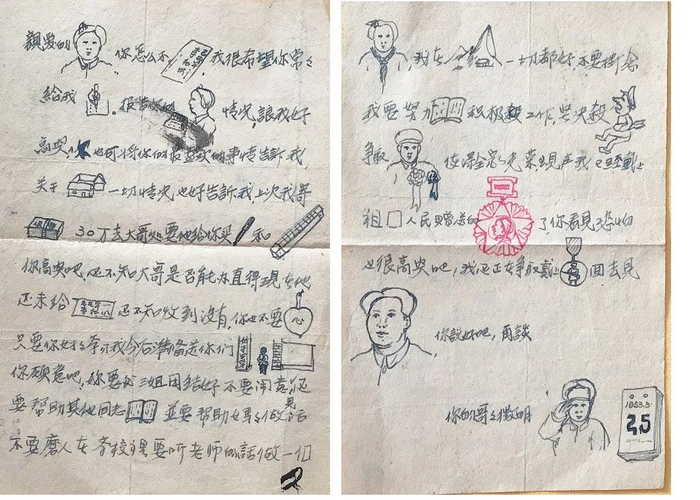 抗美援朝烈士李征明写给妹妹的家书,图文并茂,显示了无限才华和意趣。