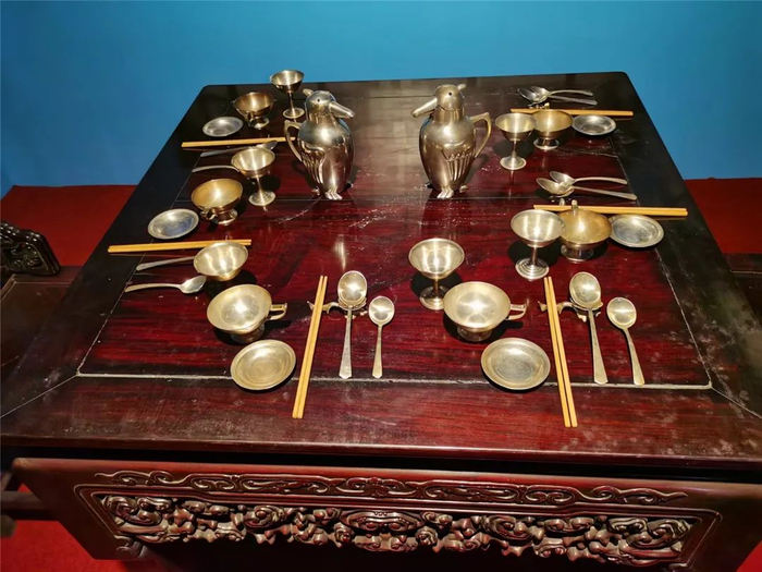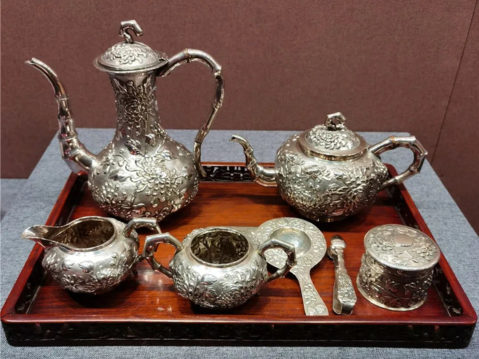 还有裘天宝的银茶壶、老大房的包装纸、天晓得文魁商标、各种西餐餐具。