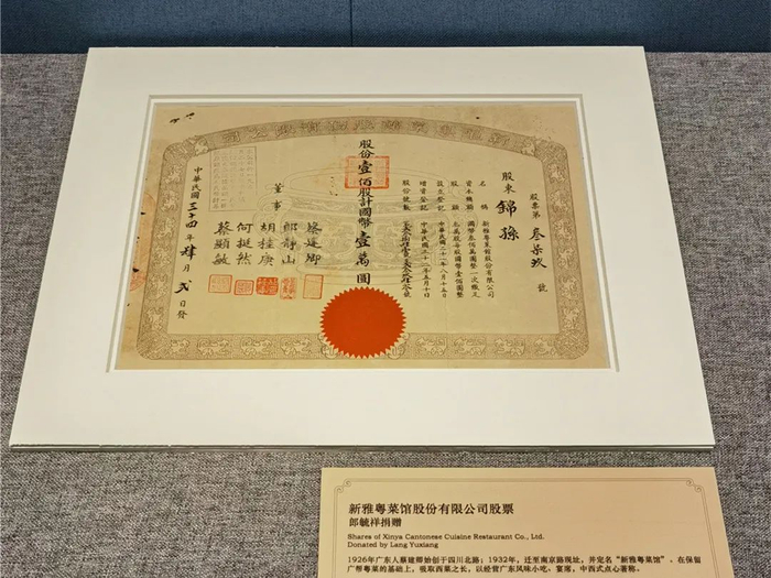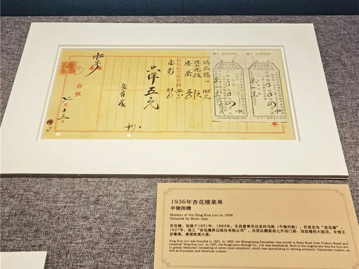 观众可以看到鸿运楼等老字号的金字招牌,邵万生、杏花楼、冠生园、梅林等老字号的广告画、菜单和股票等;