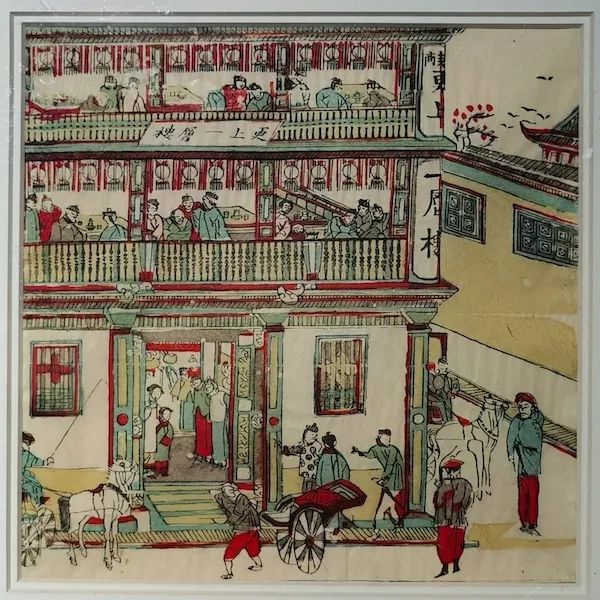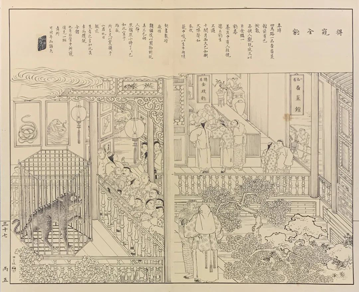 在一幅《点石斋画报》风格的画中,观众可以看到清末的上海兴起“吃大菜”的风尚,而福州路上的一品香是较早开设的番菜馆之一,为了吸引顾客,店家还买了只金钱豹供客人观赏。