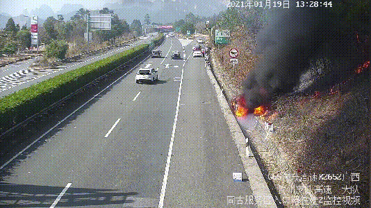 车辆停下后宋某立即下车,随后车辆车头部位开始冒黑烟,起火燃烧。宋某和路过的热心司机试图灭火,却发现他们车上未携带灭火器。正值冬天,草木干枯,车辆的火苗把高速公路旁的树木引燃。