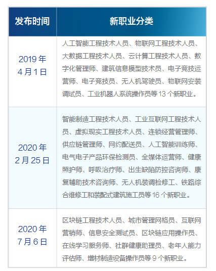 通过对近两年国家发布的新职业类别(如图)进行整体观察和深入分析发现,新职业具有以下明显的特点: