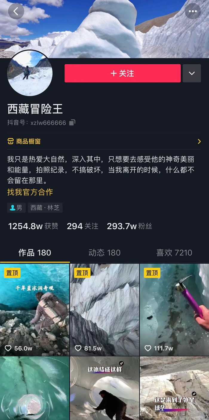 记者注意到,针对网友们的质疑和猜测,1月21日,王相军的同伴小左通过其短视频账号发声,称网上流传的“蓝洞”视频,是在2020年12月9日拍摄的,地点在恰青冰川,当时是5个人4条狗一起去的,“这蓝洞是我最先发现的,我在里面玩了一会儿,然后他们再赶过来的”。