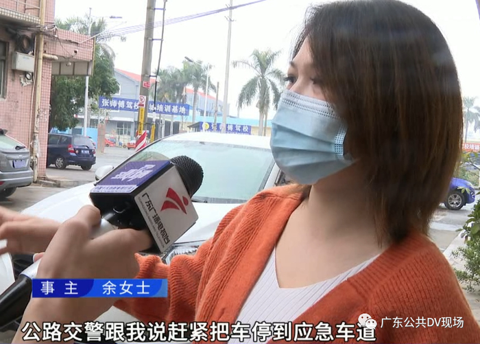 “当时交警来了之后,说这里很危险,让我们把车挪到应急车道。”
