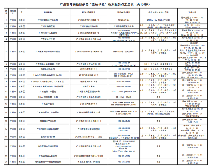 1月22日,广州市卫生健康委发布广州市最新的167家开展新冠病毒“愿检尽检”检测服务点相关信息,并对大众关心的问题进行了答疑。
