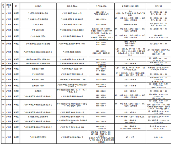 滑动查看广州市医疗机构服务点名单↓