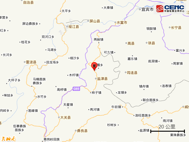 周边县城:震中距盐津县8公里、距四川筠连县29公里、距四川高县41公里、距四川屏山县53公里、距绥江县53公里,距四川宜宾市76公里,距重庆市275公里。