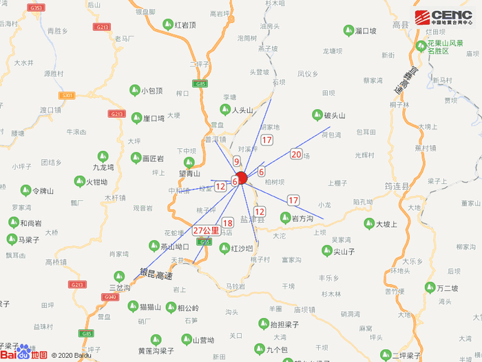 附近村镇:本次地震周边5公里内的村庄有黄荆咀、椒子村、白杨垇、垮山湾、椒子坝、大溪沟、八里、柏香林、茨竹坪、盆河,20公里内的乡镇有艾田乡、落雁乡、普洱镇、中和镇、盐井镇、兴隆乡、滩头乡、牛寨乡、豆沙镇、吉利镇。
