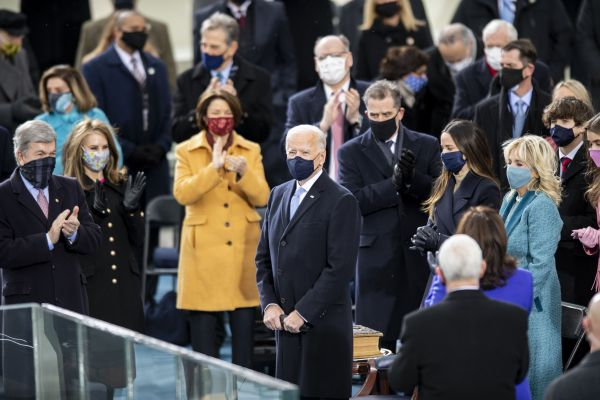 新总统戴着口罩——除了发表演讲,他一整天都戴着口罩——出现在椭圆形办公室,开始用他的笔写这个故事。他签署的行政令蚕食了特朗普的遗产。