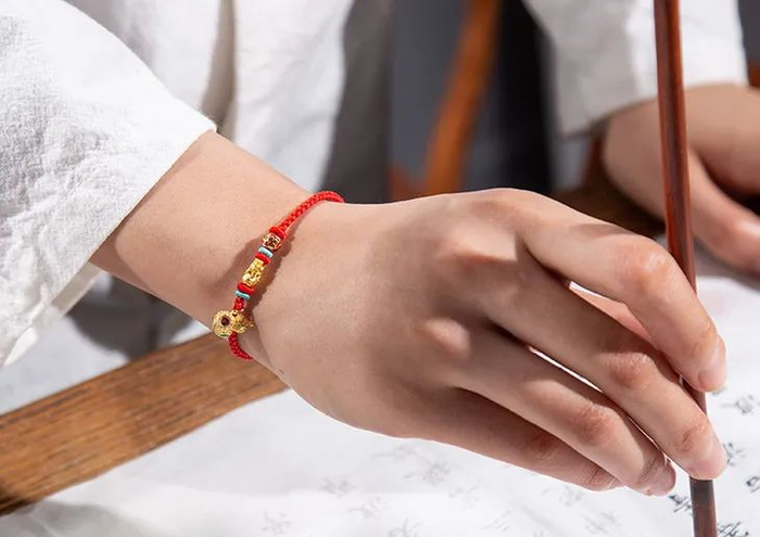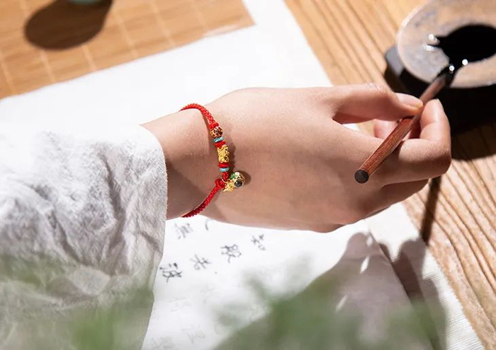 大年三十戴,讨个好彩头;平时戴手上,盼着能红红火火过一年;本命年有它,祈求平平安安,添福加运。