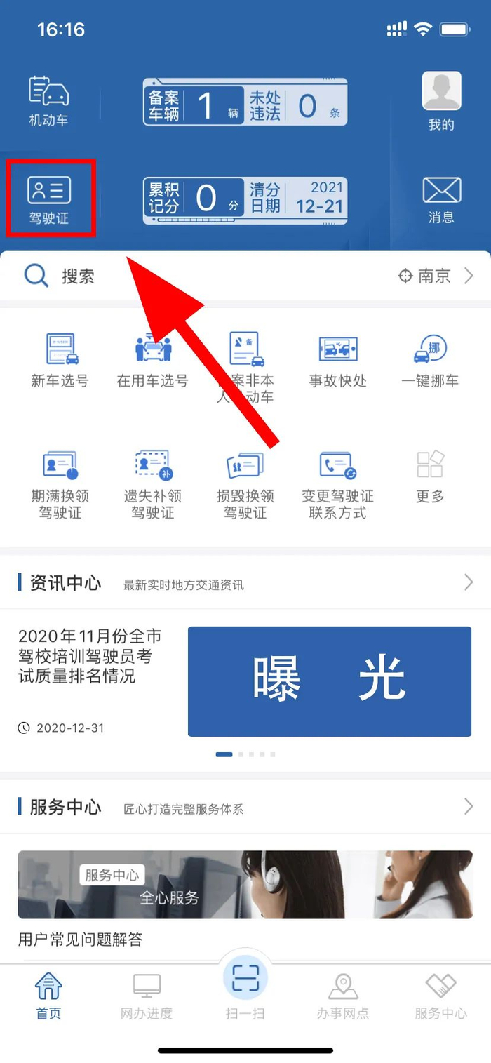 ① 登陆“交管12123APP”,点击左上角“驾驶证”图标