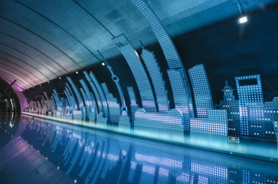 置身于这无人驾驶的列车内,穿越在深邃的隧道中,不仅完成了轨道交通由传统技术向现代化技术的腾跃,还能领略到一连串各具文化特色的车站站厅空间。