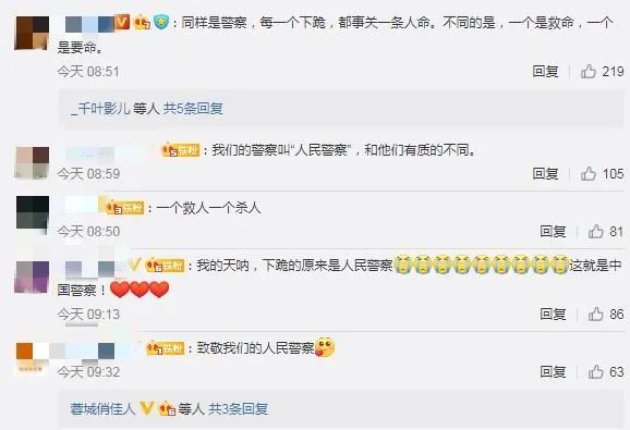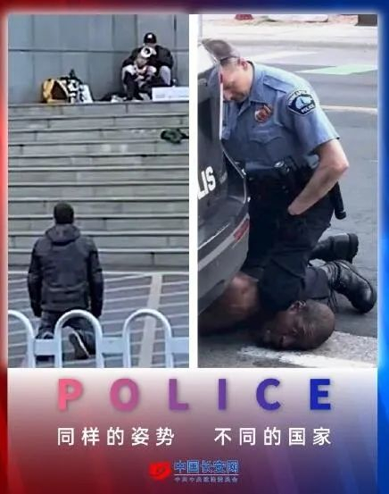 下跪者的身份曝光后,中国长安网发布的一张图片迅速引起网友的热议,图片中,一个是舍生忘死、愿意用自己的生命去交换被挟持人质生命的中国警察,一个是因为种族歧视、个人偏见就莫须有私自给黑人判了刑并暴力执法致黑人死亡的美国警察。