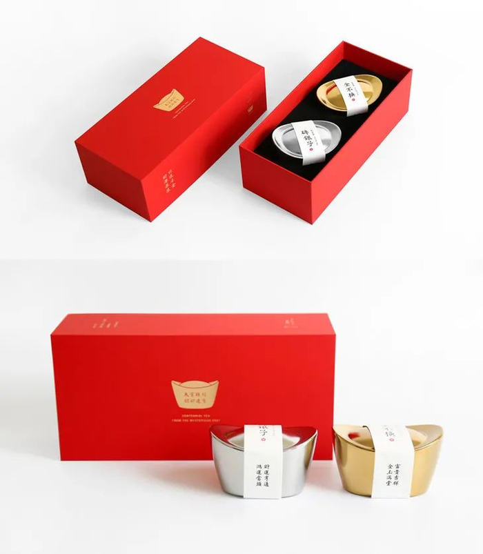 每只元宝内装50g碎银子茶叶,由银箔纸包好,塞得满满当当。