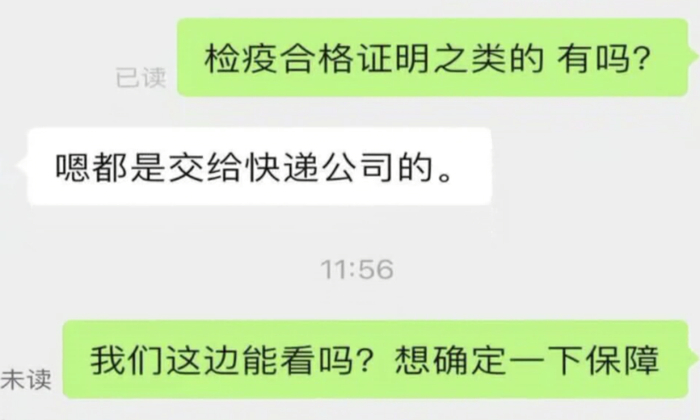 据悉,店家几乎都是通过快递方式运送,但当记者询问是否可以提供检疫合格证明时,无一店家愿意提供,其中一件称是自行交给快递公司的。