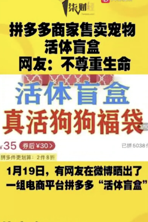 拼多多一度被曝有宠物狗只的活体盲盒