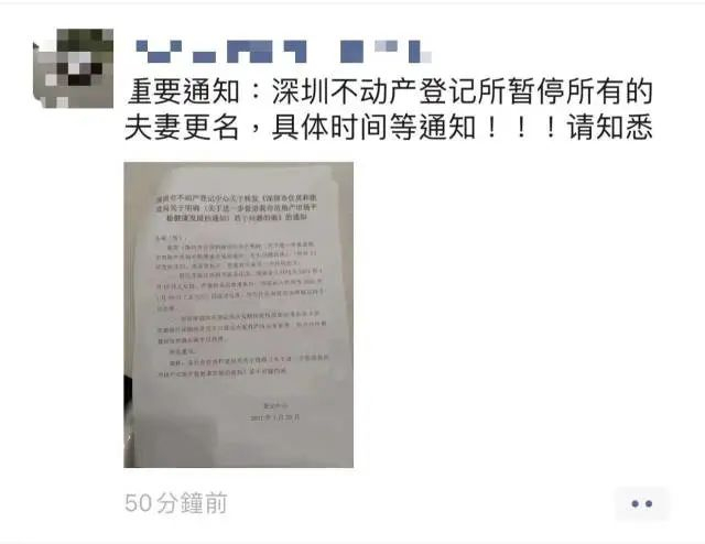 1月21日,一份深圳市不动产登记中心关于转发《深圳市住房和建设局关于明确若干问题的函》的通知在网上流传。