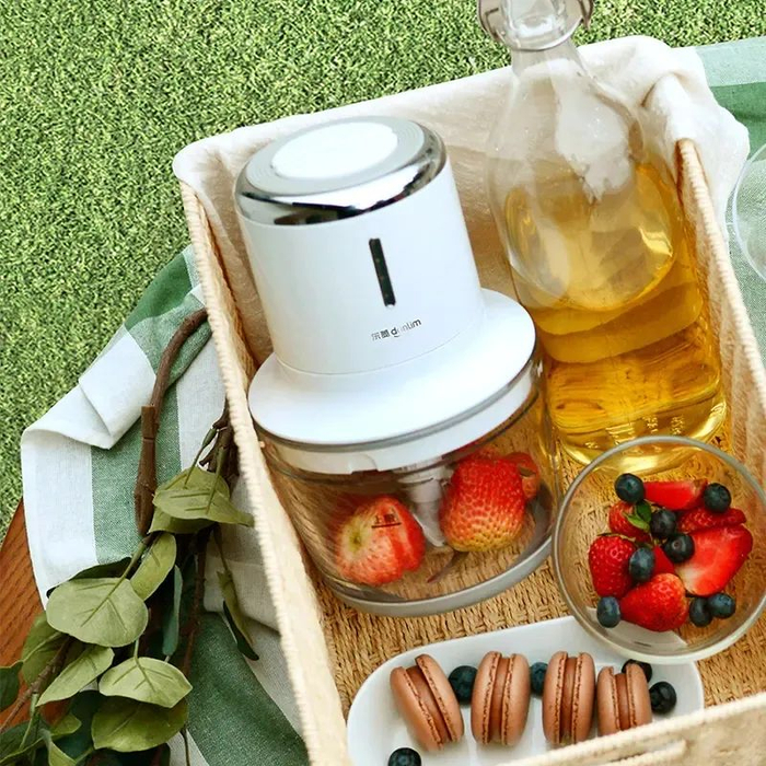 1.无线使用,移动便携,快速细腻绞肉,两档速度打磨不同食材。