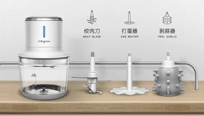 为什么那么强呢?原来它为大家搭配了三个小工具头——绞肉刀、打蛋器、剥蒜器。
