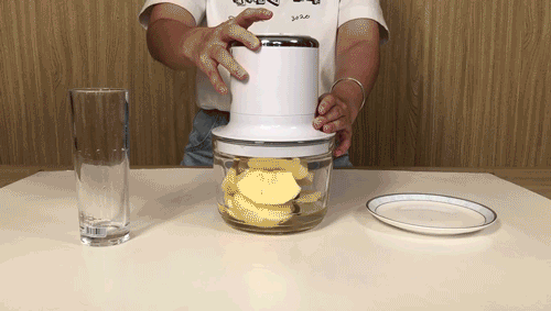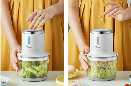把洋葱头丢进去,瞬间就打成了洋葱丁,再也不用手切辣到眼睛了!像香菇、芹菜、胡萝卜等各种叶菜,都能用它来切碎,又快又省心。