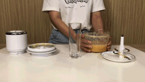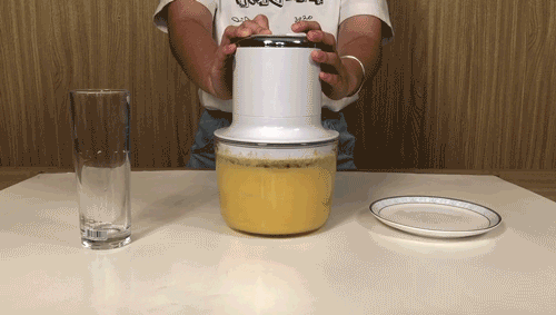 按下开关,刀片转动快的看不见影子,犹如在碗里形成一股小型龙卷风,能够安静且迅猛地将里面的食材绞碎。