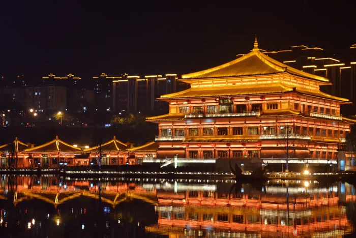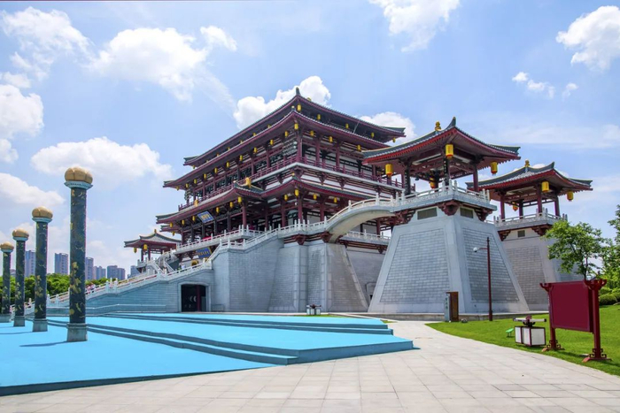 现如今紫云楼,由张锦秋大师设计,依据史料完美重建,高39米,共4层,站在紫云楼,畅想唐时皇帝登临此楼,凭栏观景,欣赏梨园轻歌曼舞,赐宴宠妃近臣的场景,盛唐气象的变幻万千与宫廷风韵的雍容华贵,在这里一眼千年。