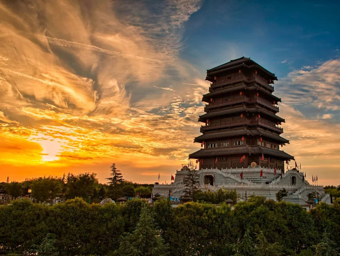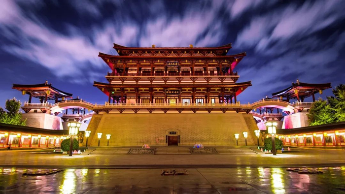 紫云楼是大唐芙蓉园园内最为经典的仿古建筑,展示了“形神升腾紫云景,天下臣服帝王心”的唐代帝王风范。