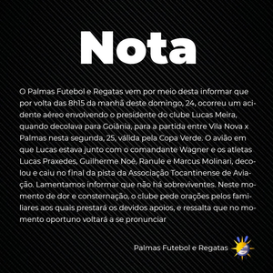 据外媒报道,俱乐部主席卢卡斯-梅拉和4名球员当天乘坐一架私人飞机前往巴西中部城市戈亚尼亚,参加一场当地时间本周一进行的丁级联赛。但这架可搭载6人的双引擎飞机起飞时在跑道尽头坠落。失事原因尚不清楚。