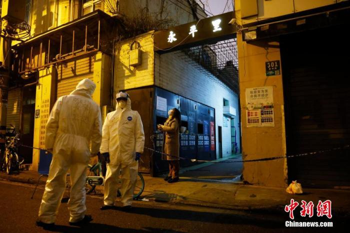 资料图:近日,上海确诊病例涉及区域和场所严格落实消毒措施。 殷立勤 摄