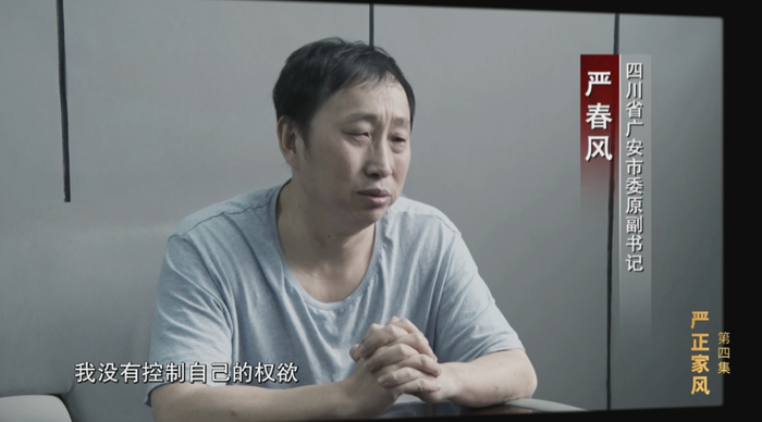 严春风(四川省广安市委原副书记):我没有控制自己的权欲,所以我的前妻李向阳才那么跋扈,才觉得后头有我支撑。我感觉不是舆论空穴来风,不是李向阳性格的问题,确实是我犯的错误,才导致了整个舆情到今天这个局面。